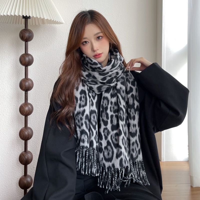 Šál 2024, ktorý vás zahreje v zime, na jeseň a v zime, nový retro všestranný leopardí šál so strapcami a zahusteným šálom Spice Girl