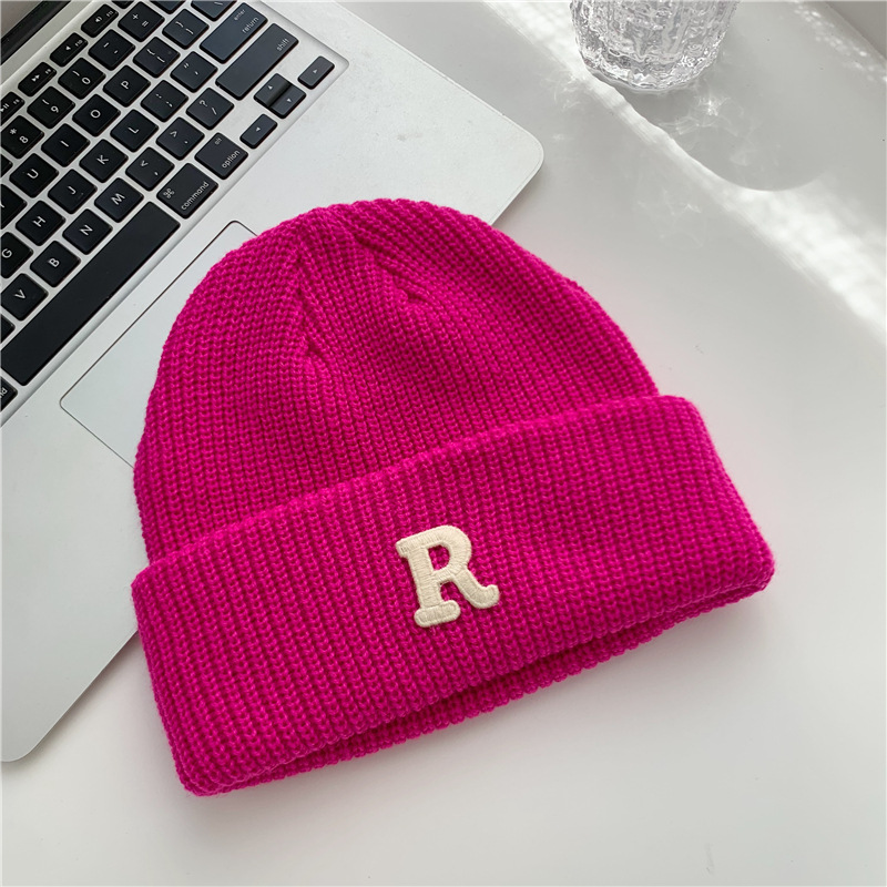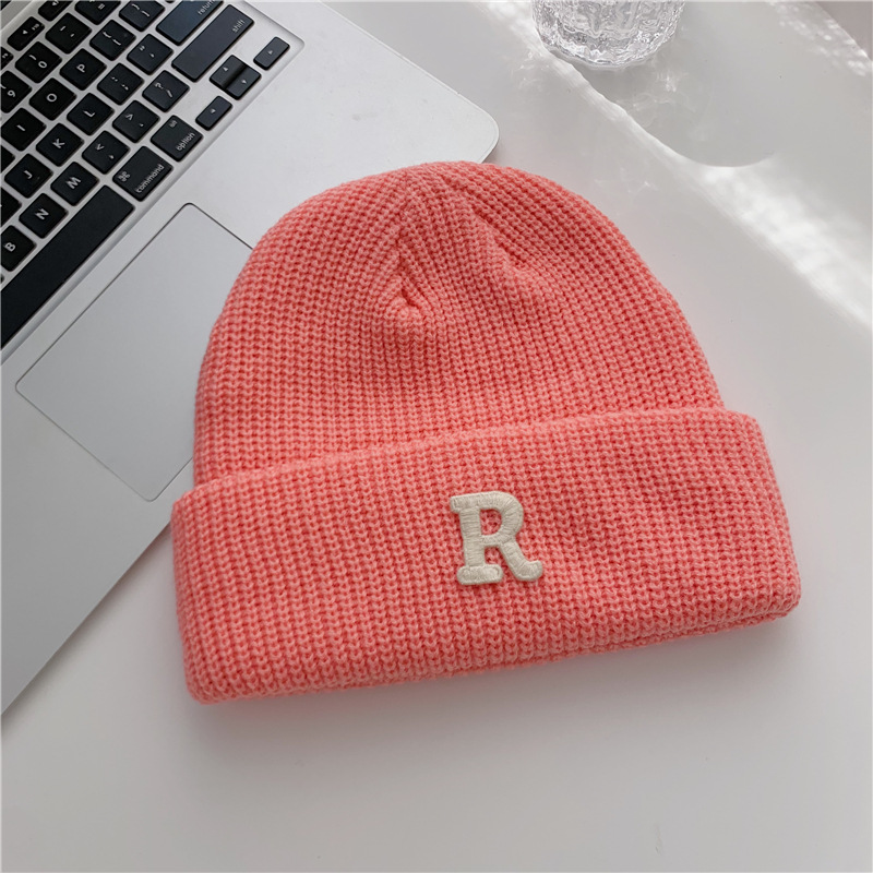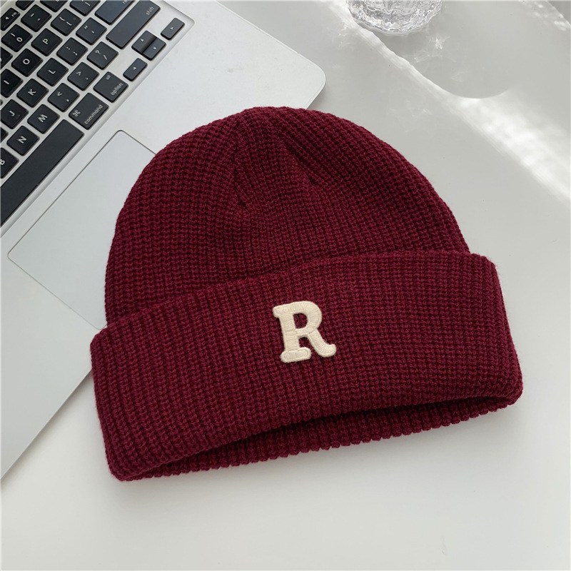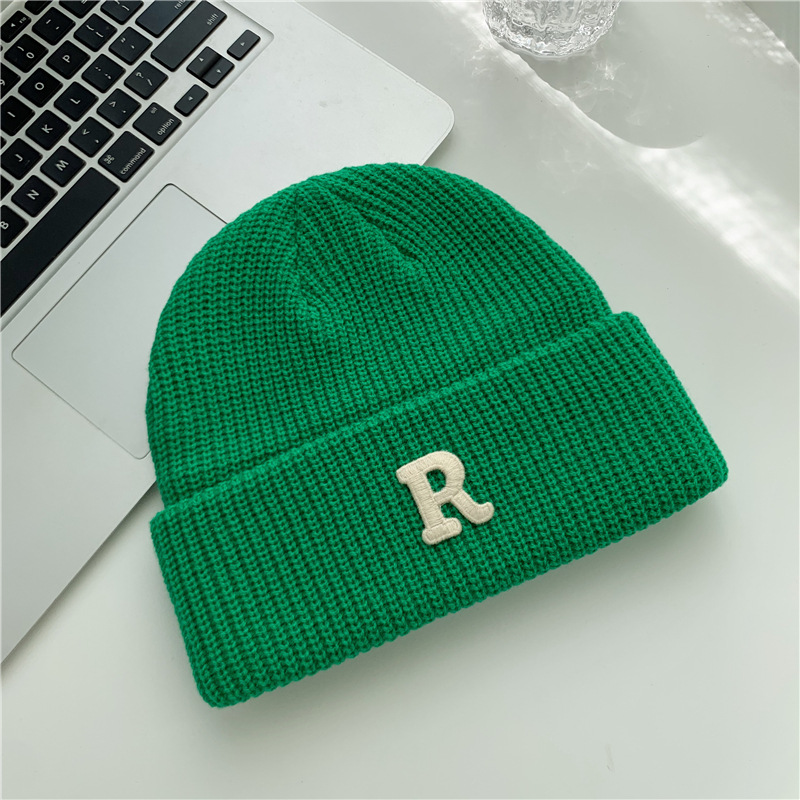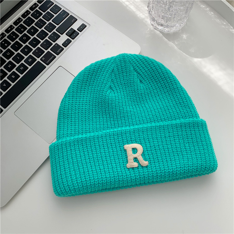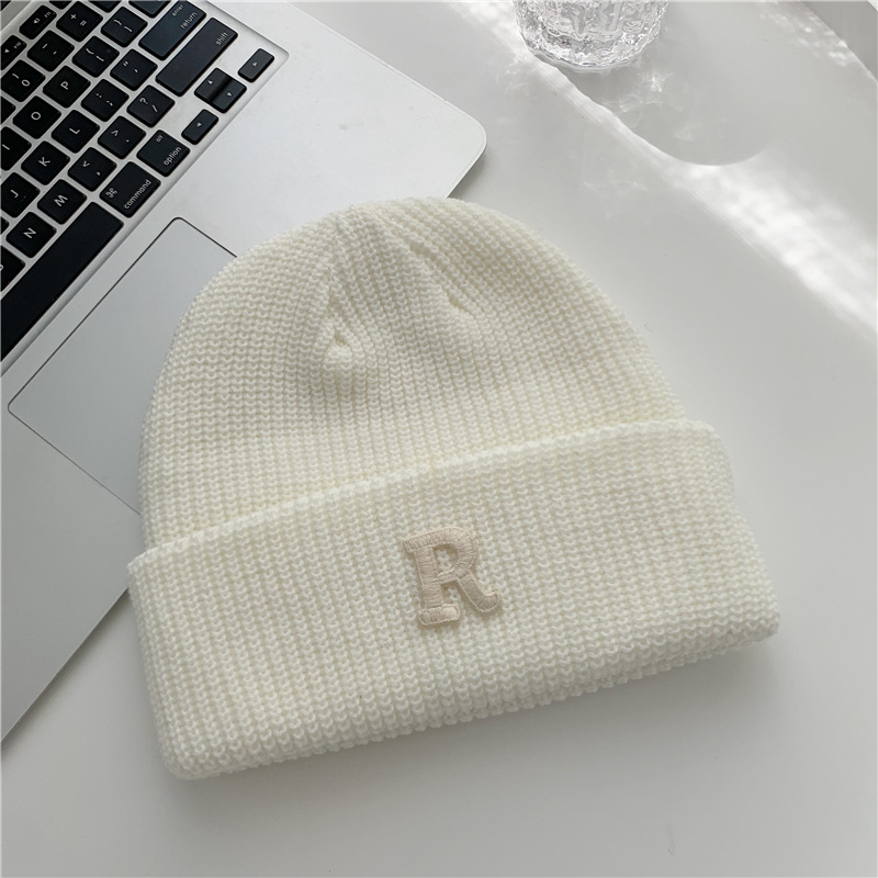 Jesenný a zimný teplý všestranný párový pulóver vlnená čiapka Pletená čiapka s písmenom R
