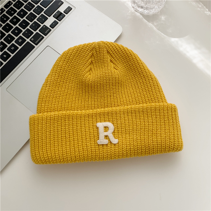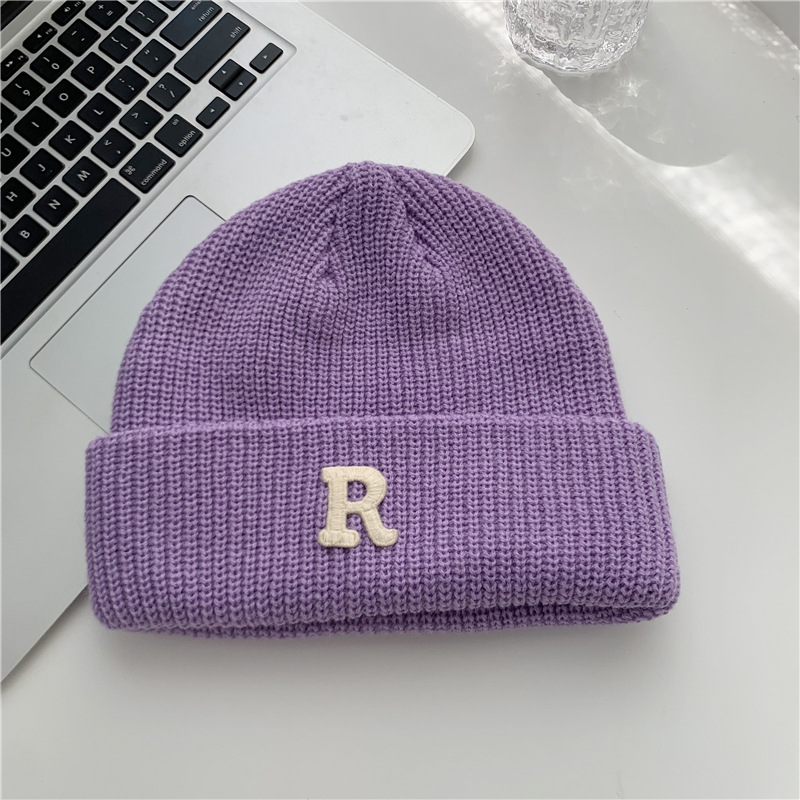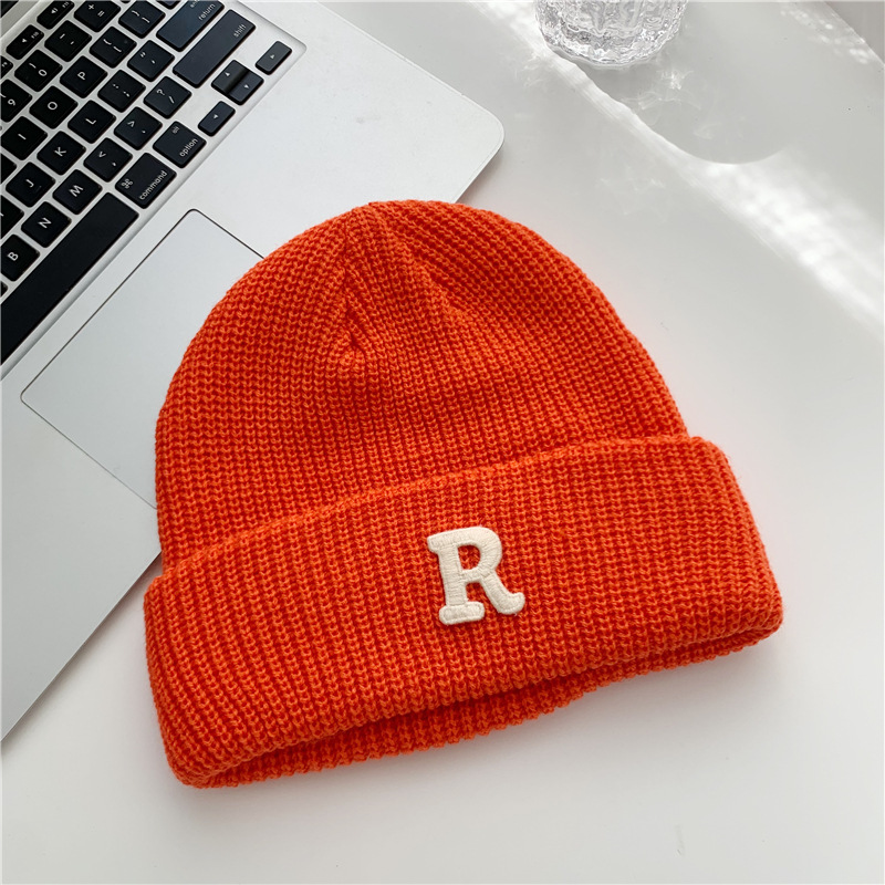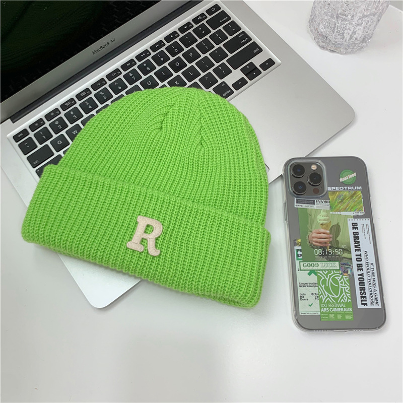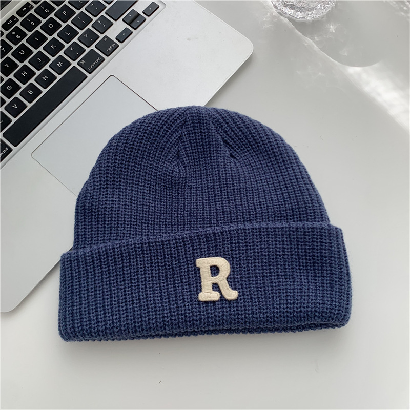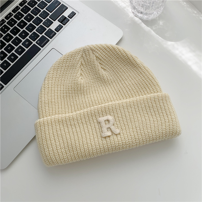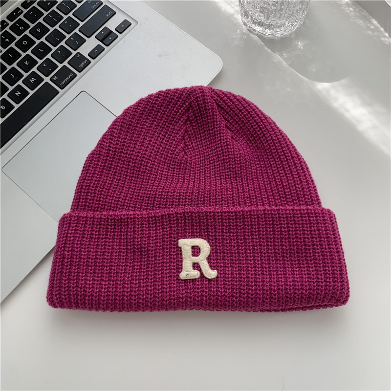 Jesenný a zimný teplý všestranný párový pulóver vlnená čiapka Pletená čiapka s písmenom R