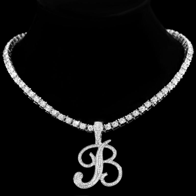 Retiazky Iced Out Rhinestones Cursive Iniciály Prívesok Náhrdelník pre ženy Bling Písmeno Meno Tenis Choker Náhrdelníky Punk