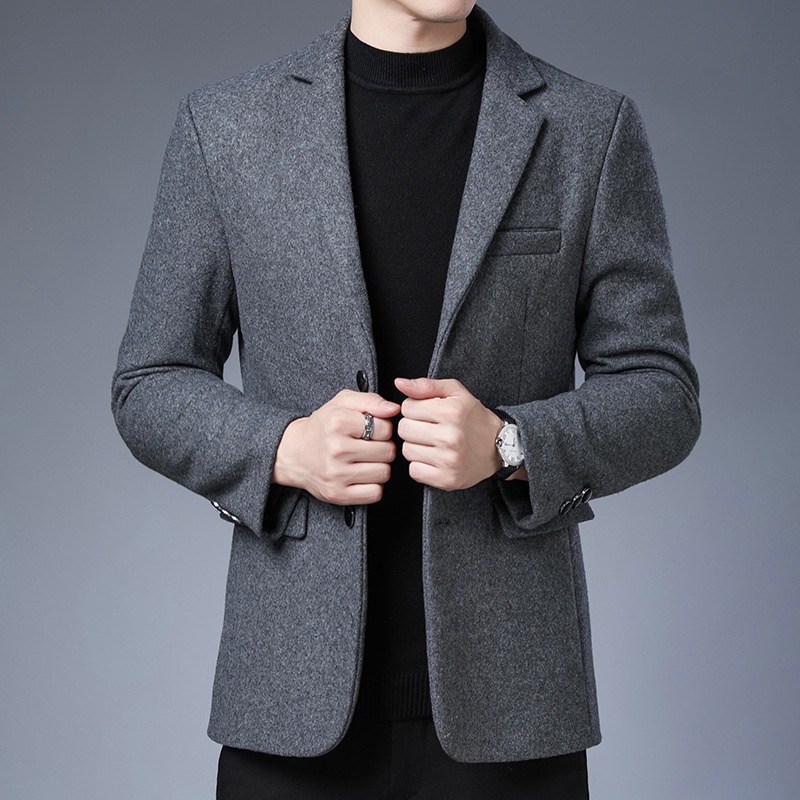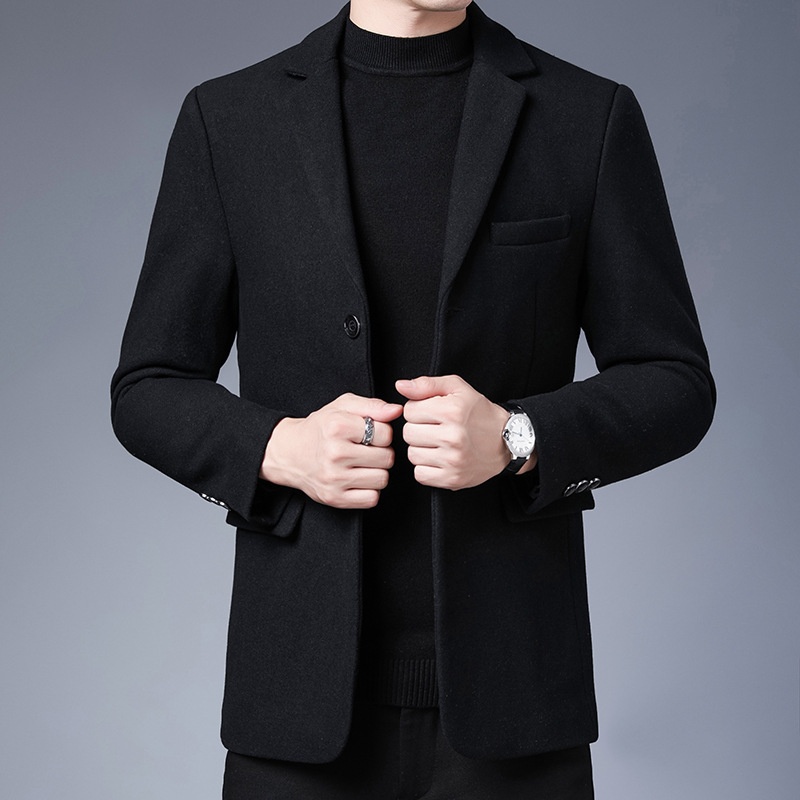 boy Boy Business Casual 2023 Autumn Winter Short Suit Solid Color Lapel Middle-aged Gentleman Wool Men's Coat