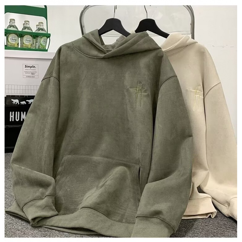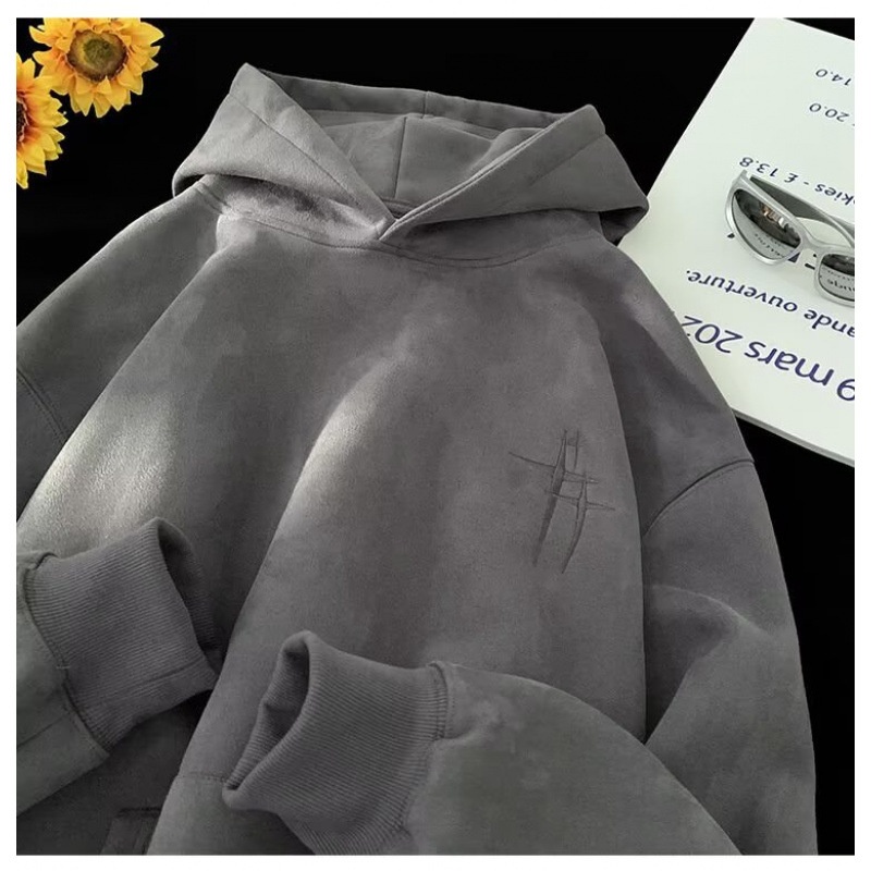 boy Heavyweight Suede Embroidered Sweatshirt For Men, Autumn American Trendy Brand Versatile Hoodie, High Street Lazy Style