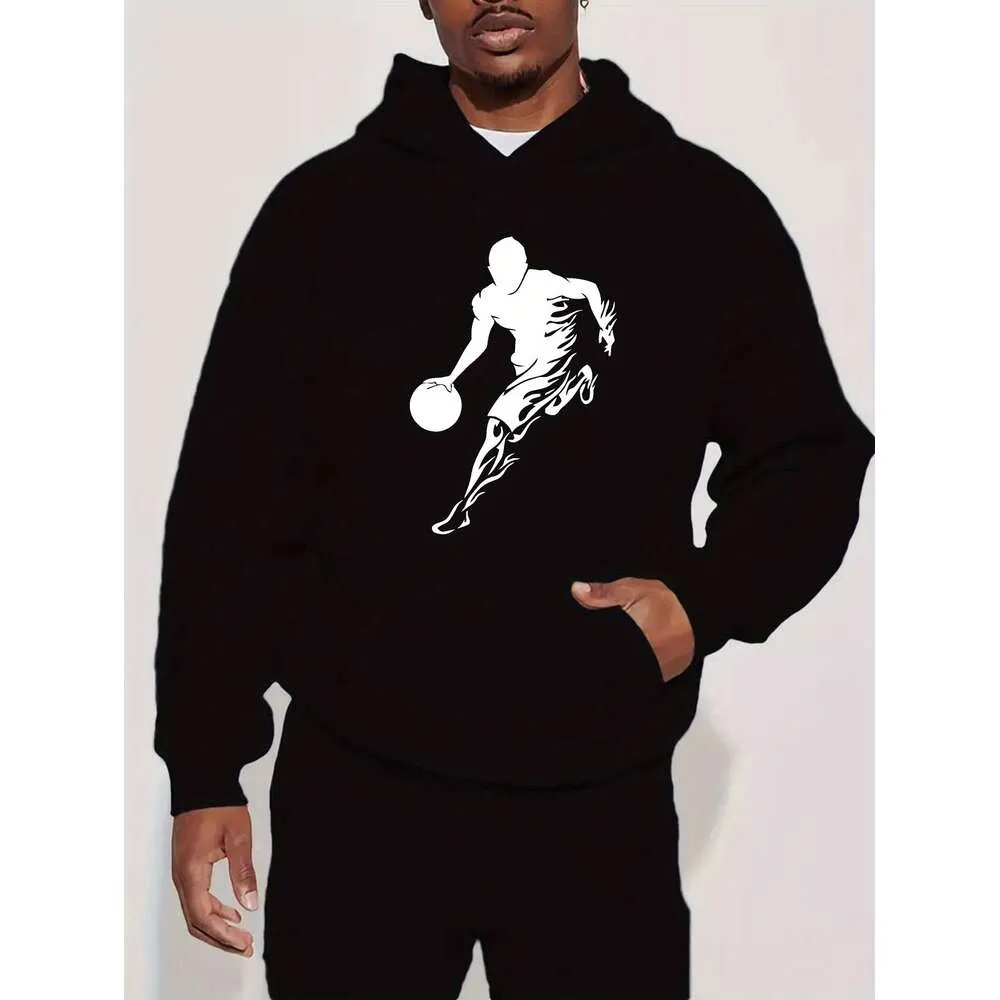 Pánska ležérna trendy mikina s potlačou basketbalu, sveter s kapucňou, top s dlhým rukávom pre mužov 29f8d7b9