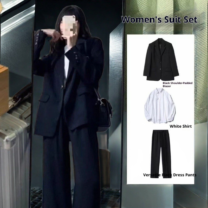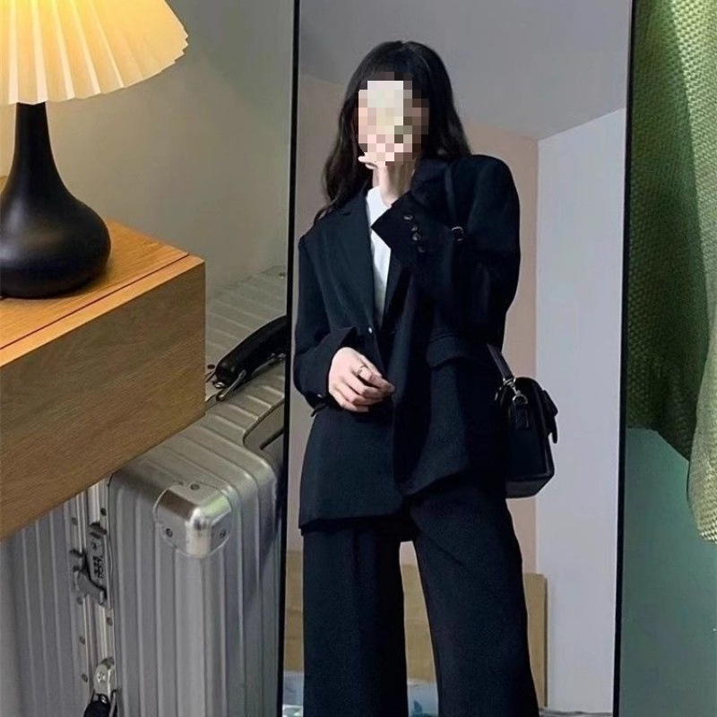 Black Suit Set for Women 2024 Spring and Autumn New Fashion Casual Professional Formal Suit for College Students Interview
