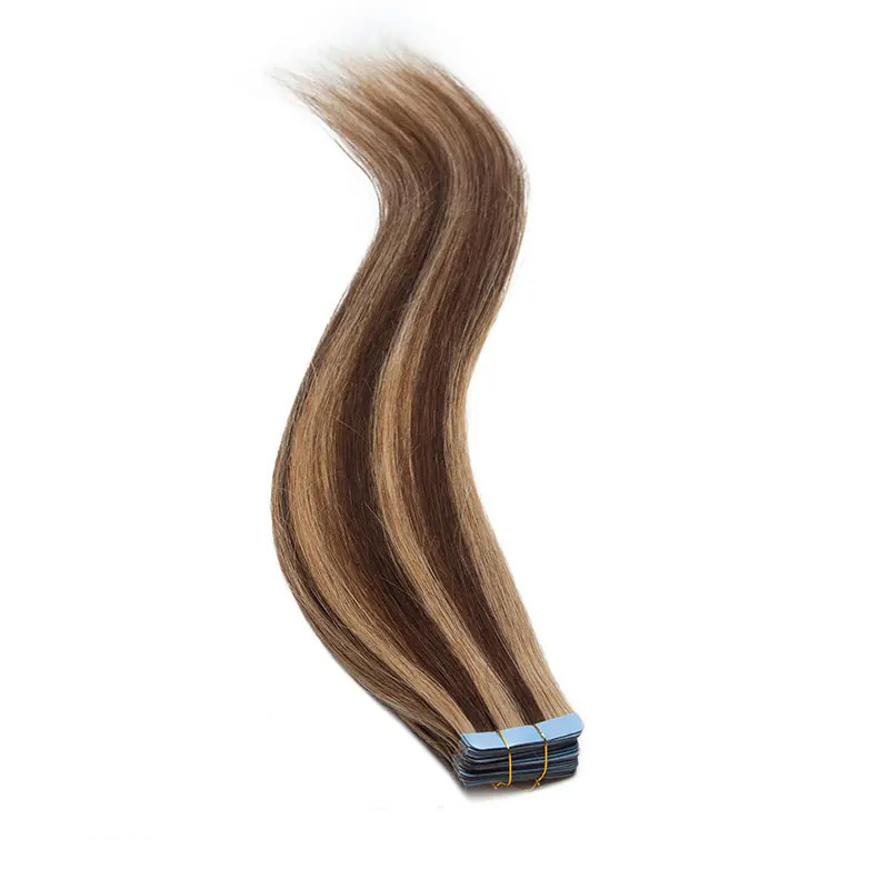 Pravé ľudské vlasy PU gumové bezšvíkové predlžovanie parochne farba 4/27 európska a americká módna farebná páska vo vlasoch