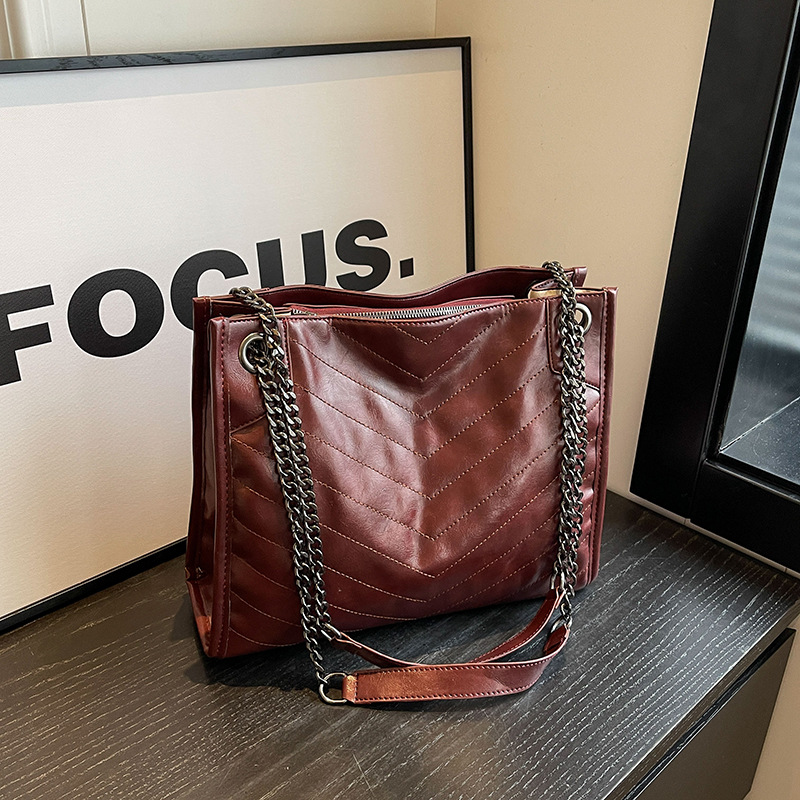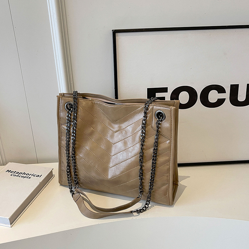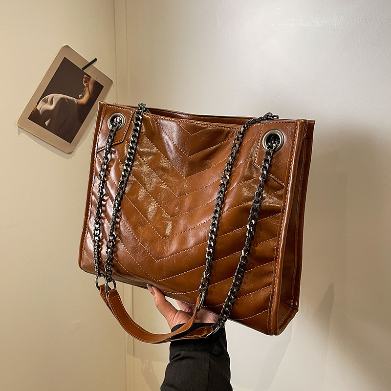 Lingge Chain Women's Large Capacity 2023 New Fashion One Shoulder Crossbody Autumn/Winter Texture Commuter Tote Bag