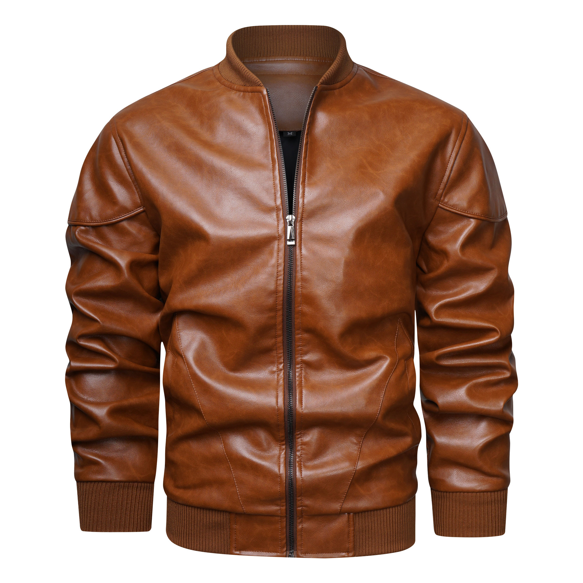 New 2022 autumn baseball collar PU leather flight suit simple basic leather jacket Jiake jacket trendy
