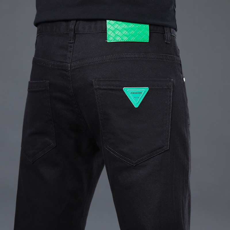 Men's high-end black jeans, men's trendy slim fit small straight leg, 2022 all-season versatile elastic oversized pants