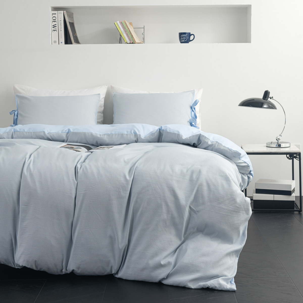 Posteľná bielizeň z jednoduchej tkanej prikrývky z bublinkovej gázy s technológiou šnurovania, obliečka na paplón a tri kusy
