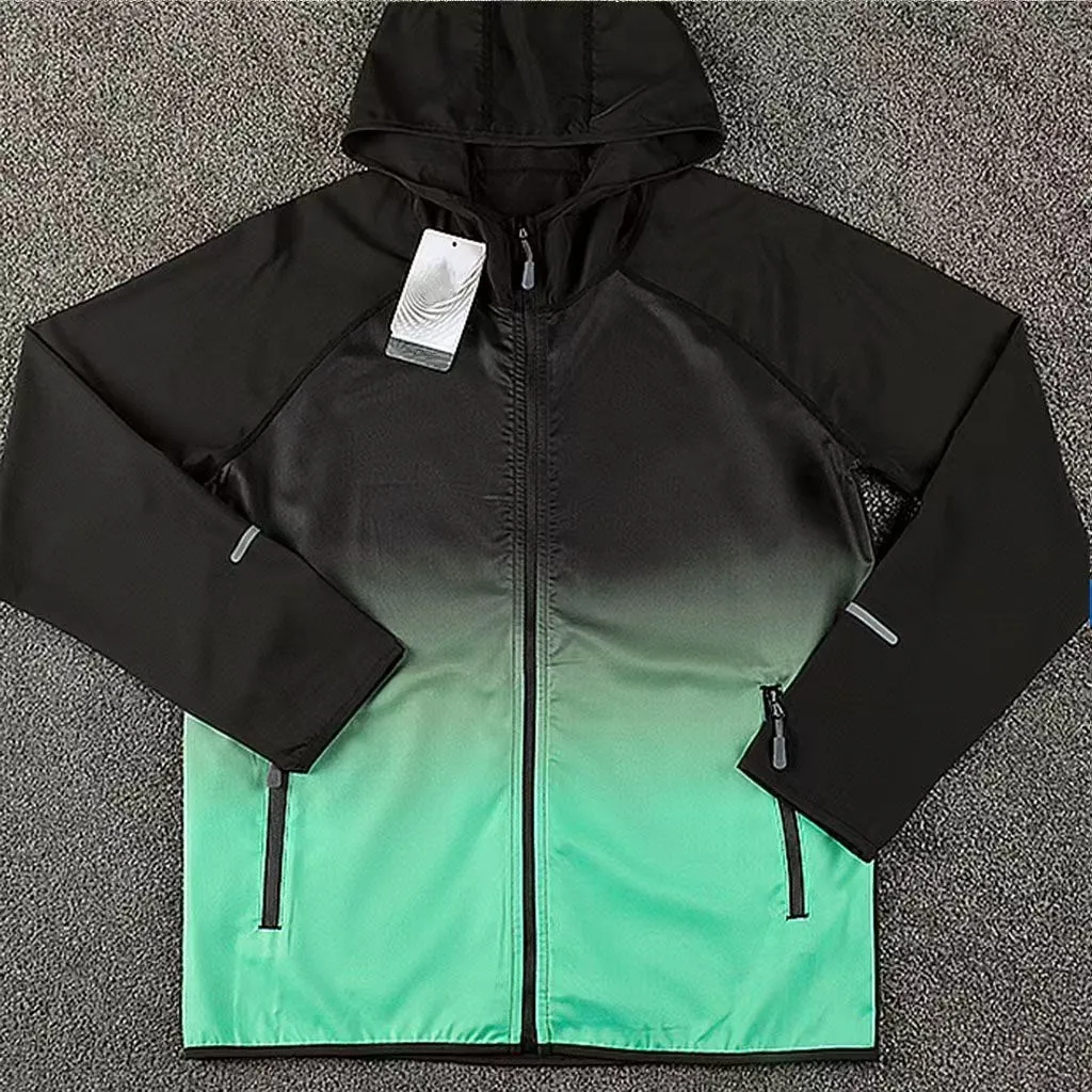 1.Well-known sports sunscreen clothing, summer mens and womens track and field training thin coats, breathable, brand quick drying sunscreen coat, running, fiess sports windbreaker. Mountaineering, outdoor thin sports soft shell jacket. Running hooded sports trench coat, marathon, cycg, ultra-thin zipper hooded jackets, windproof, UV hooded coat, the hooded windbreaker fabric is wear-resistant sport fabric, with reflective strip, zipper pockets, solid color sports jacket, professional sports wear, cheap wholesale price, reliable quality, Asian size M-5XL.