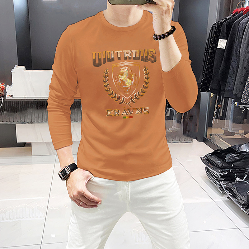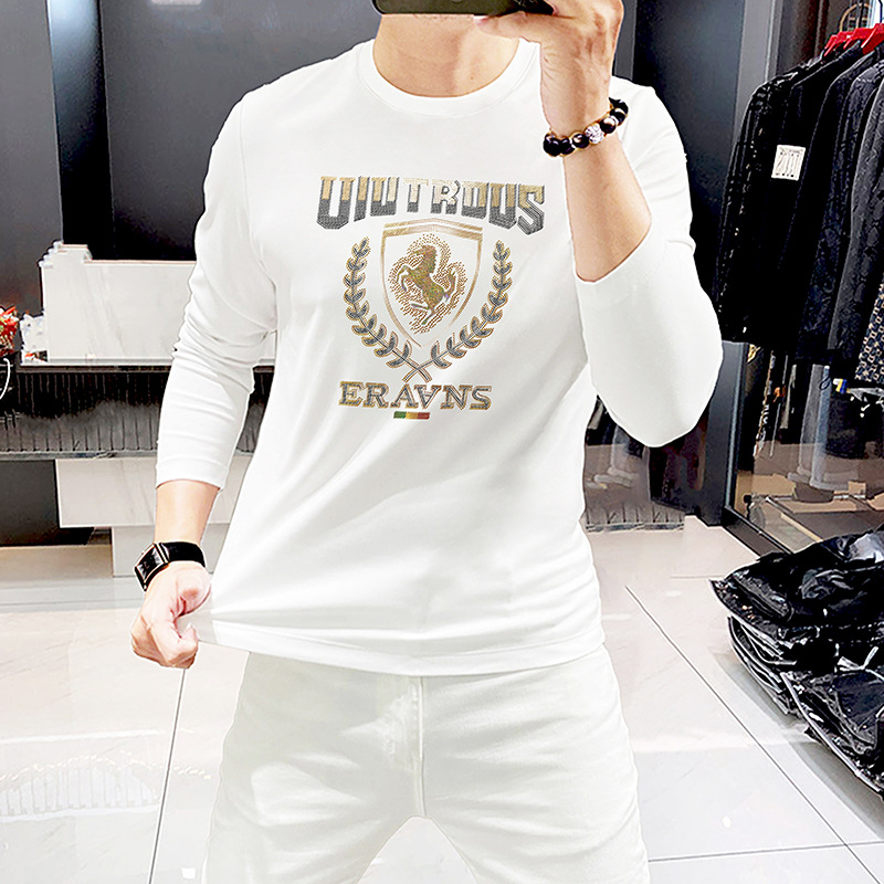 New men's long sleeved T-shirt base shirt with rhinestones, war horse European goods, men's round neck, spring and autumn tops, casual