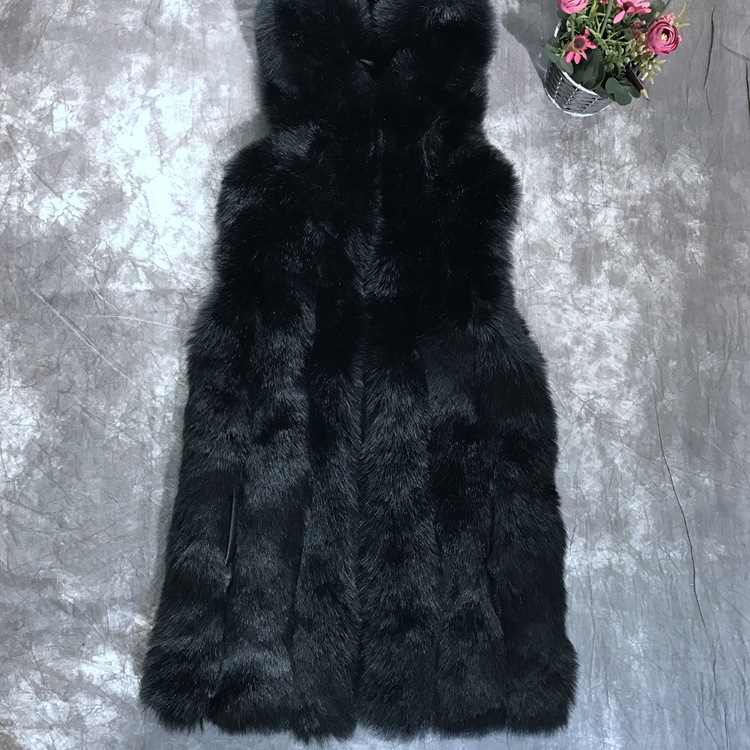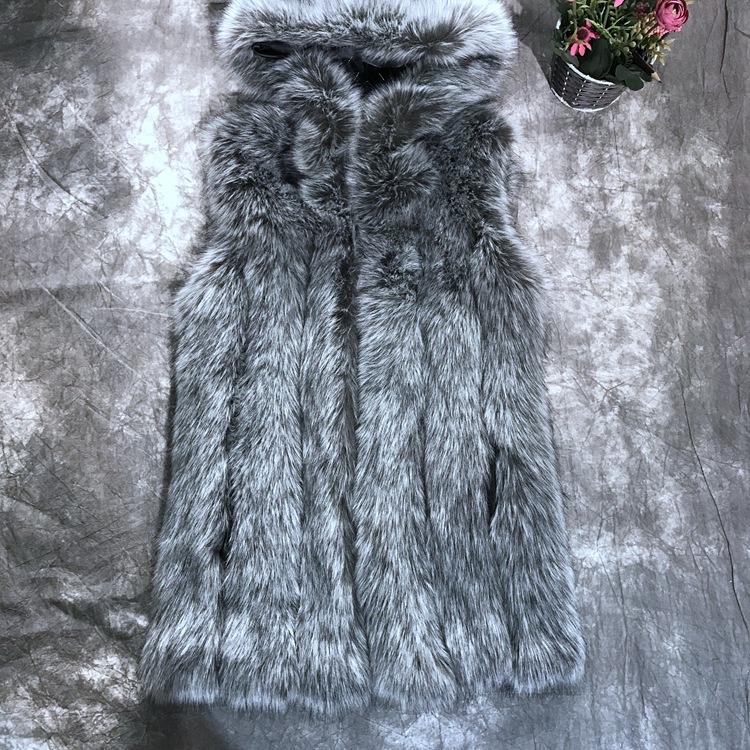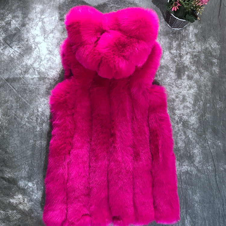 Dámske oblečenie, kožušinová vesta s kapucňou, nová dámska bunda strednej dĺžky