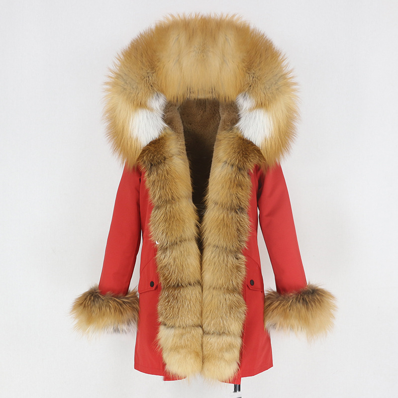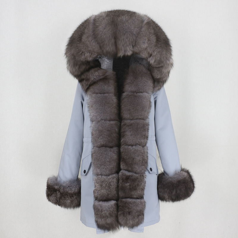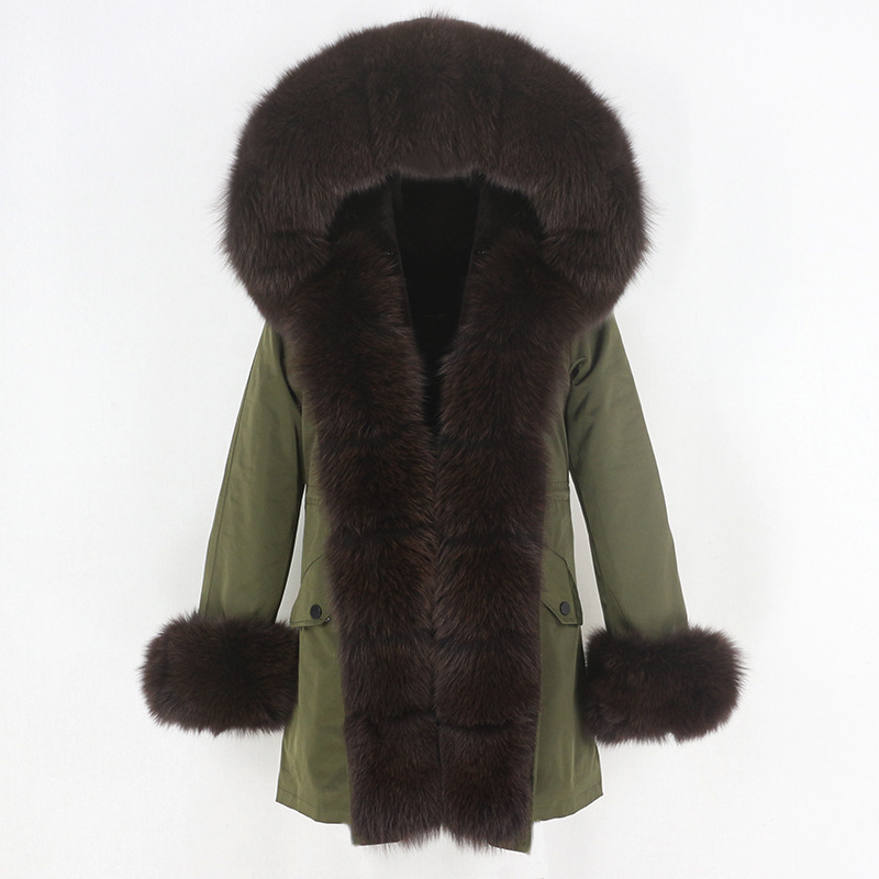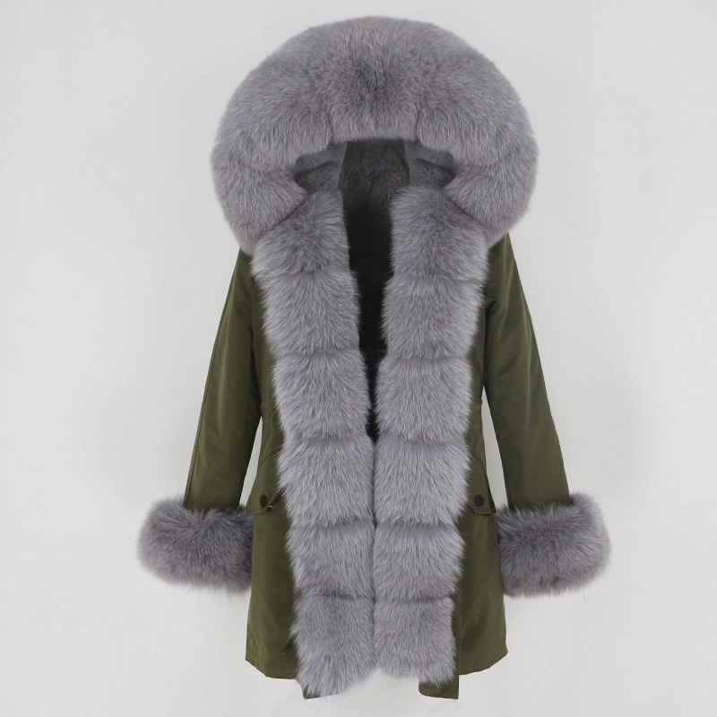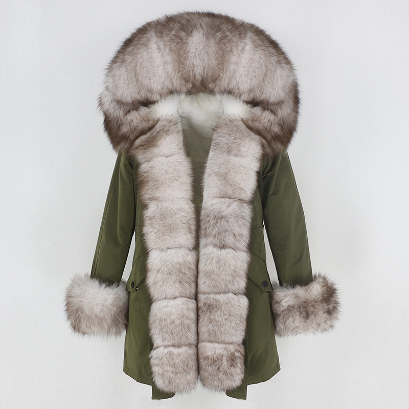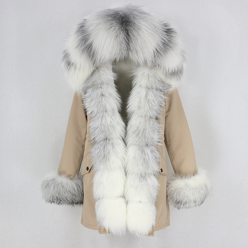 Women's Clothing Winter Parka For Women With Detachable Fox Fur Collar Lining Fashionable Warm Ladies Mid Length Coat