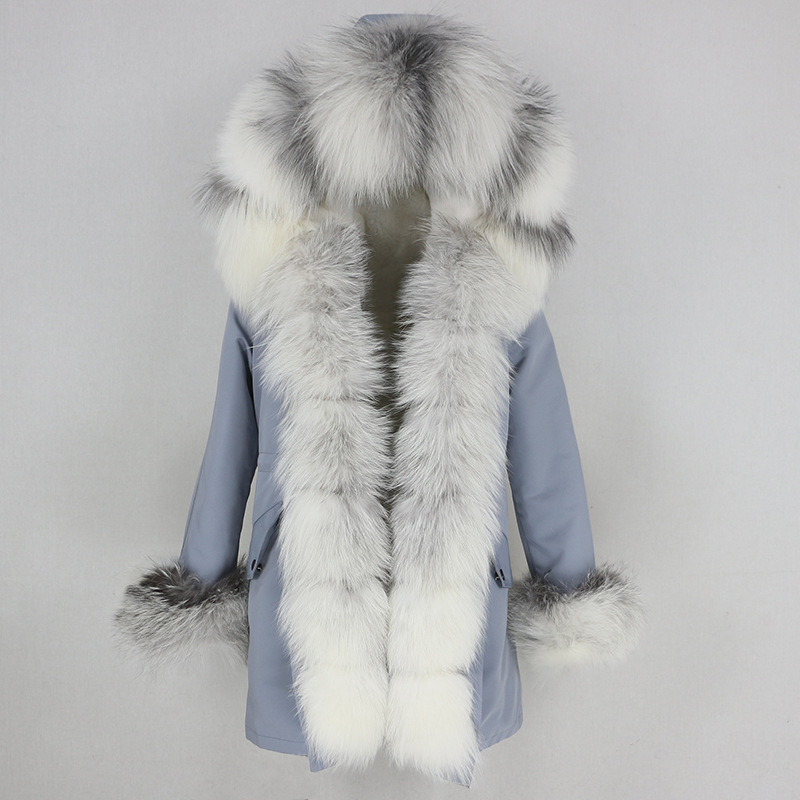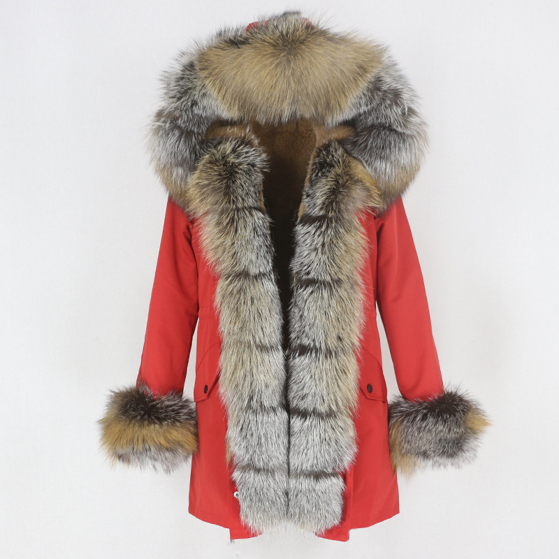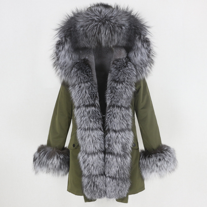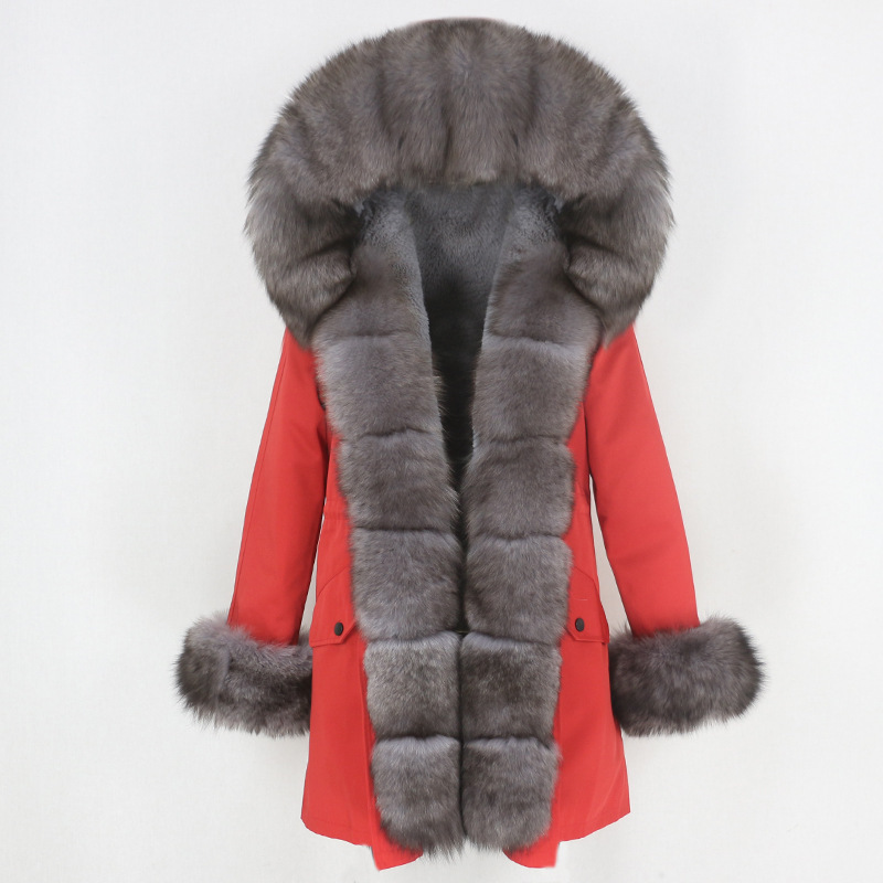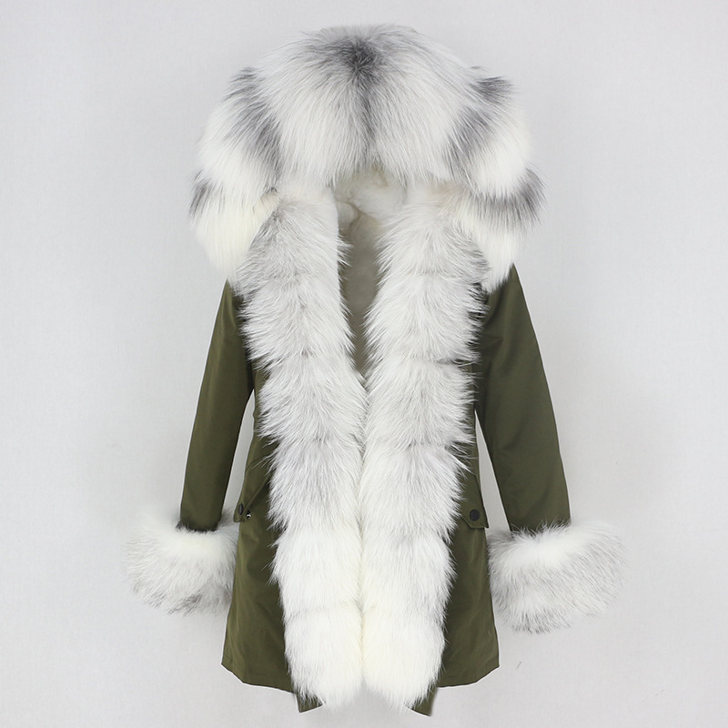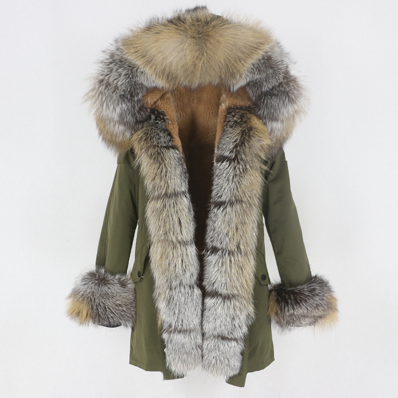 Women's Clothing Winter Parka For Women With Detachable Fox Fur Collar Lining Fashionable Warm Ladies Mid Length Coat
