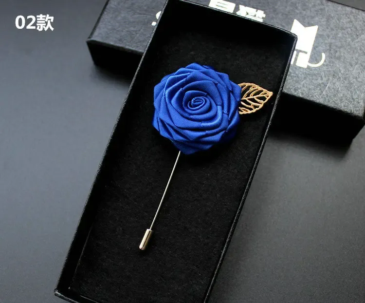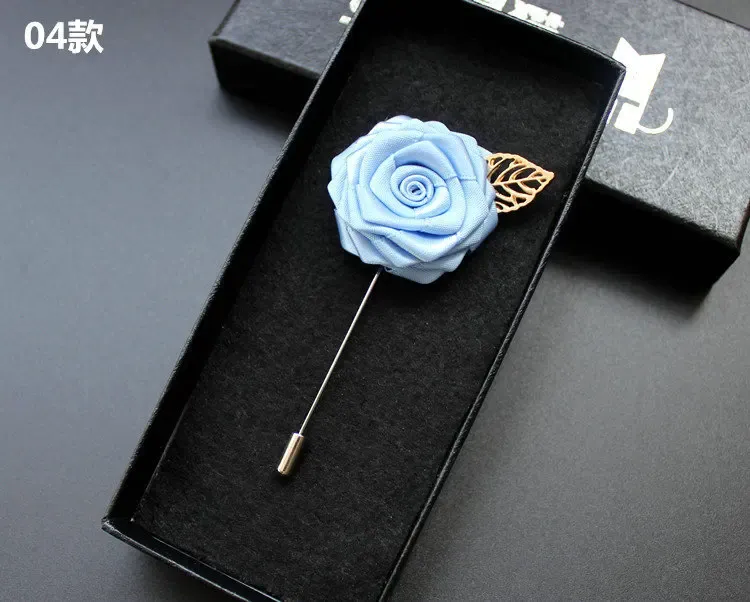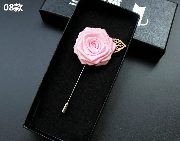 Brošne Britské muži Romantické krčné klopové brošne Ženy Nevesta Svadobné párty Stuha Ružový kvet Uniforma Šik Korzáž