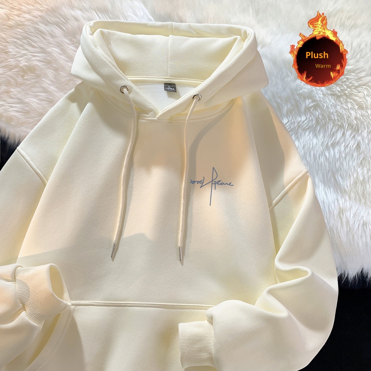 Product Source Category:In Stock,Brand:Chensida,Year/Season of Release:Autumn 2025,Is it a set or not?:No,Style:American Style,Bargain Category:Youth Fashion 18-24 Years Old,Design 1:Pullover,With or without liner:No liner,Collar Style:Collarless,Sleeve Length:Long Sleeve,Is it hooded or not?:Hooded,Thickness:Average,Error margin:1-3cm.,Suitable for the season:Winter,Main fabric composition:Difu Cotton,Content of the main fabric components:91% included - 95% included,Fabric Name:Difu Cotton,Applicable Scenarios:Everyday,Pattern:Alphabet,Design details:Printed,Design:Loose Fit,Craftsmanship:Printed/Dyed,Color:Black with fleece, white with fleece, apricot with fleece, floral gray with fleece, black regular, white regular, apricot regular, floral gray regular,Size:S,M,L,XL,XXL,XXXL,Suitable for everyone:Youth,Is it exclusively for cross-border export supply?:No,Sleeve Style:Regular,Original Design Source:No,Is there a quality inspection report?:No,Gram weight:301g includes - 350g excludes,Suitable age group:adult,Applicable Gender:Male,Product Category:Fleece Sweatshirt