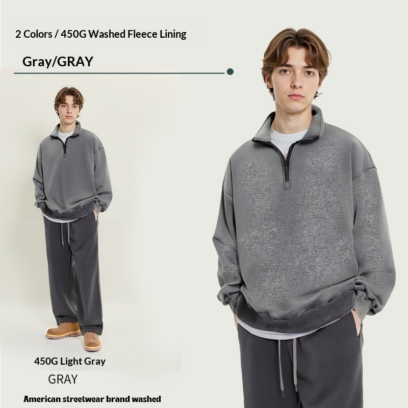 Product Source Category:In Stock,Brand:Minglang,Item Number:ML7799-0-Strictly Selected,Year/Season of Release:2025 Winter Season,Is it a set or not?:No,Style:American Vintage,Bargain Category:Fashionable Urban 24-35 Years Old,Design 1:Pullover,With or without liner:No liner,Collar Style:Stand Collar,Sleeve Length:Long Sleeve,Is it hooded or not?:Without a hood,Front placket:Zipper,Thickness:Thickened,Error margin:Contact customer service,Suitable for the season:Winter,Is it in stock?:No,Main fabric composition:Cotton,Content of the main fabric components:81% included - 90% included,Fabric Name:Chinese Cotton,Applicable Scenarios:Everyday,Pattern:Vintage,Design details:Washed Vintage,Design:Loose Fit,Craftsmanship:Washed Vintage,Clothing Pocket Styles:Side Seam Pocket,Color:Vintage Black, Light Gray,Size:M,L,XL,XXL,XXXL,Suitable for everyone:Youth,Main downstream platforms:, , , , Independent Station, ,Main sales regions:Africa, Europe, South America, Southeast Asia, North America, Northeast Asia, Middle East,We have authorized private labels available:No,Is it exclusively for cross-border export supply?:yes,Sleeve Style:other,Pocket Design:other,Original Design Source:No,Is there a quality inspection report?:No,Quality Inspection Report Number:other,Gram weight:400g and above Others,Suitable age group:adult,Is it fleece-lined?:yes,Applicable Gender:Male,Receive the Label:No Collar Label,Product Category:Fleece Sweatshirt,What is the source type?:Direct Source Factory,Hang Tag:No tags