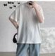 Waffle solid color U-neck short T-shirt for men's summer lazy style trend casual loose knit half sleeved clothes