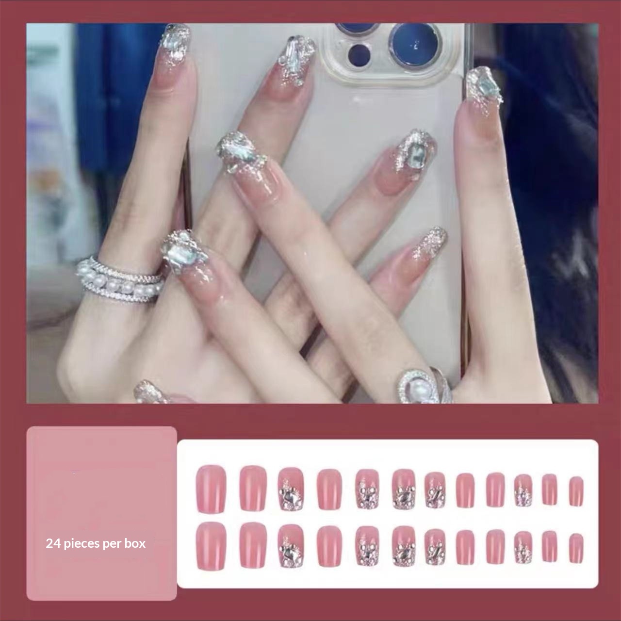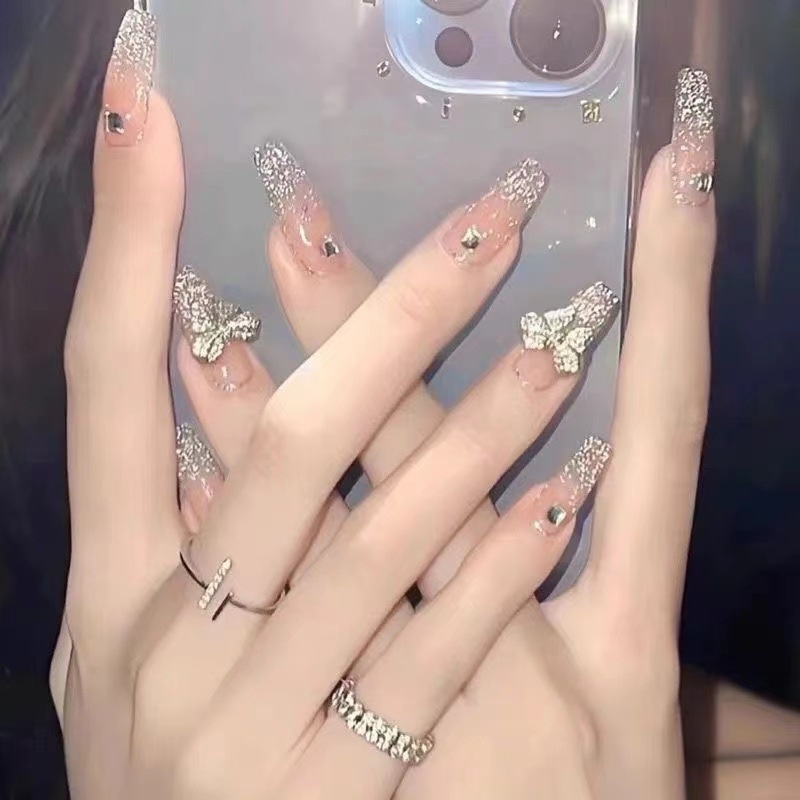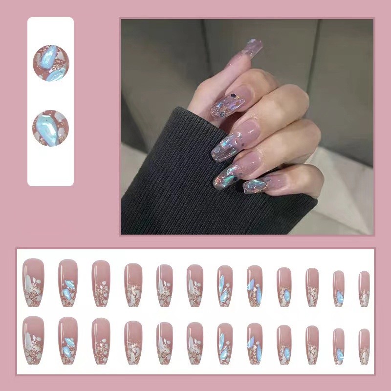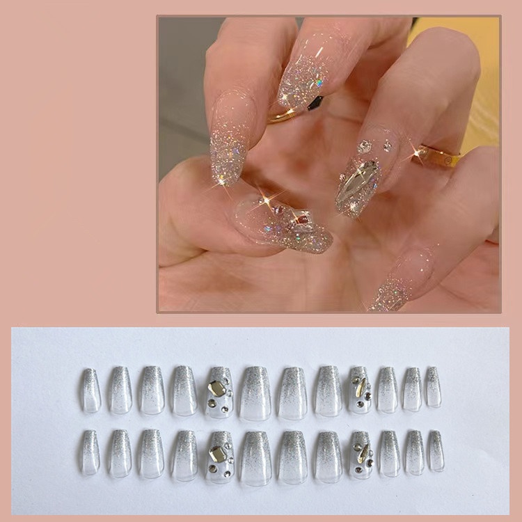 Wen Jingling Same Style Wearable Sparkling Crushed Diamond Art Finished Detachable Nails Long Nail Tips Stickers